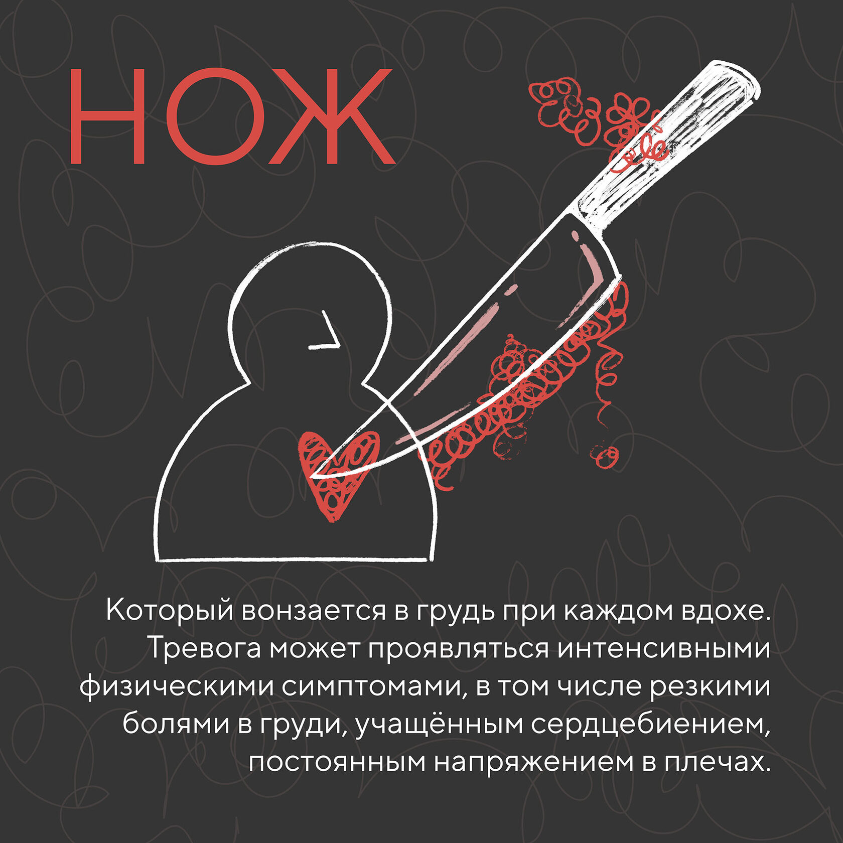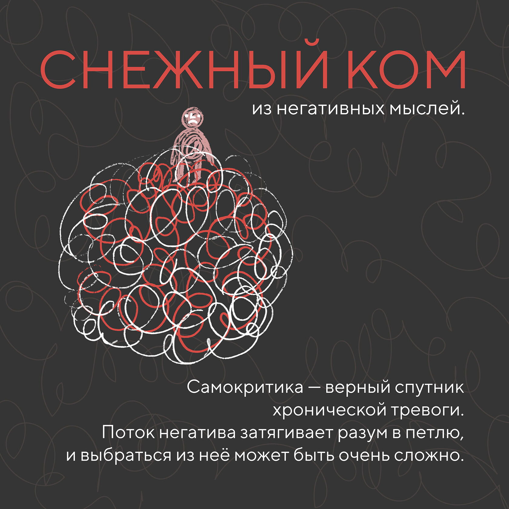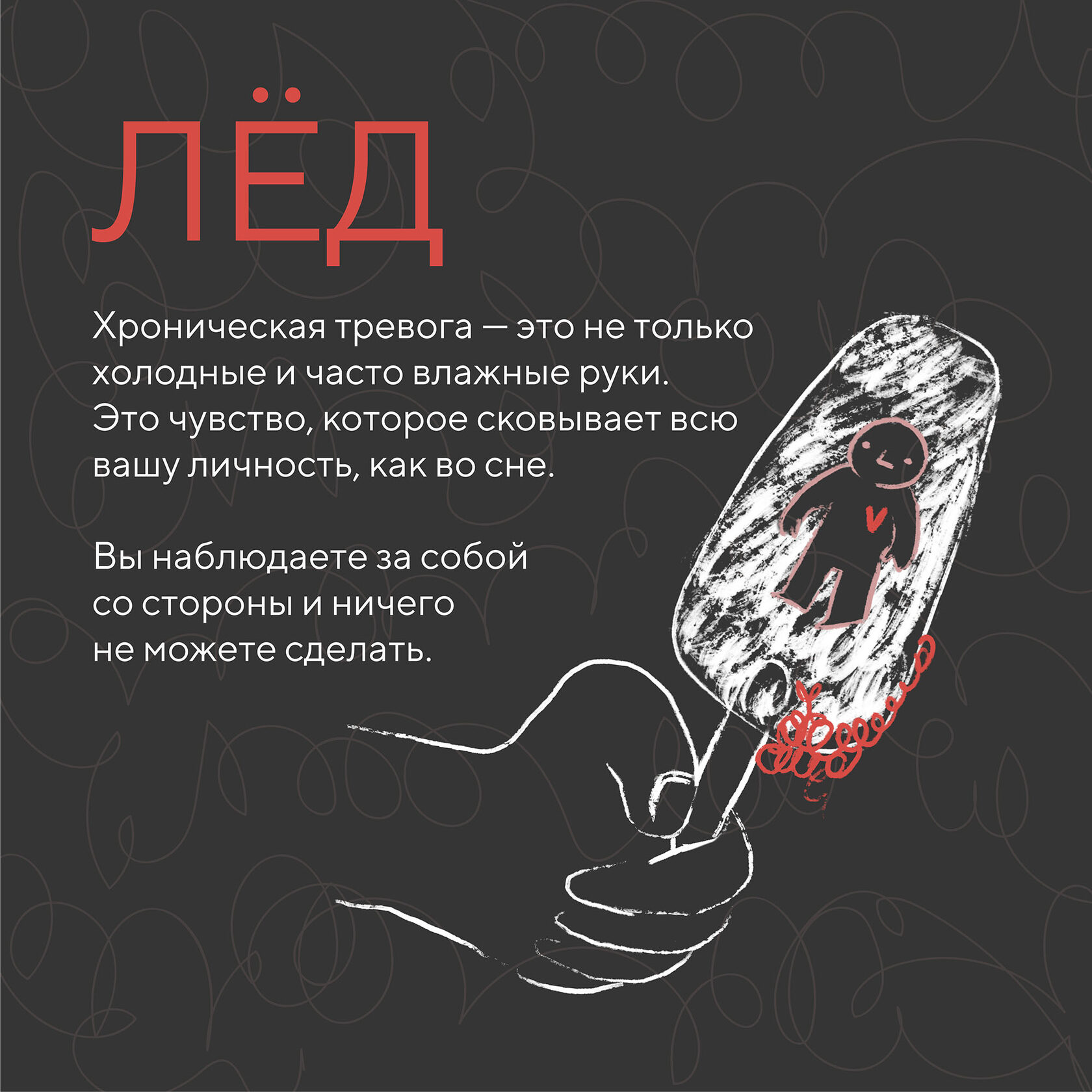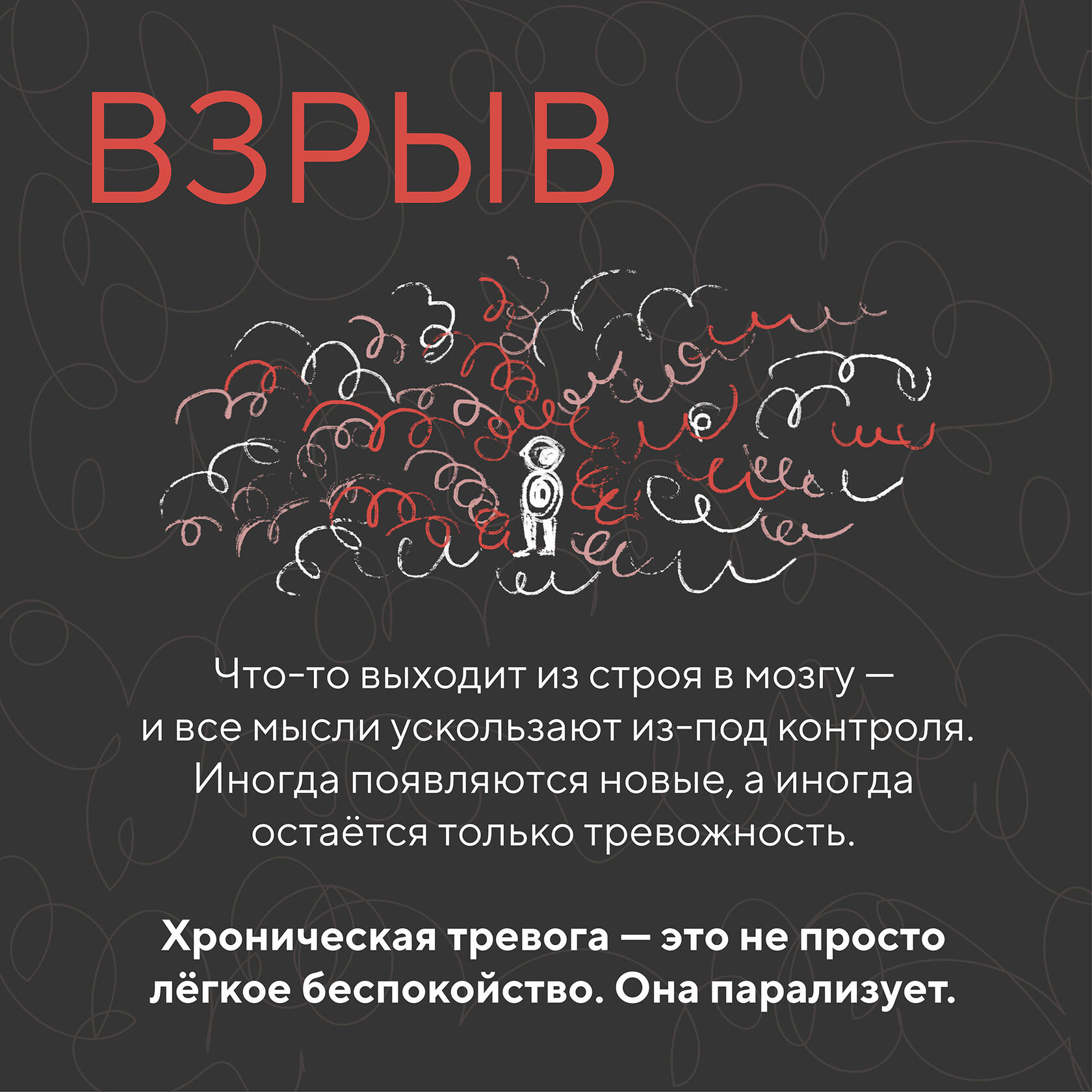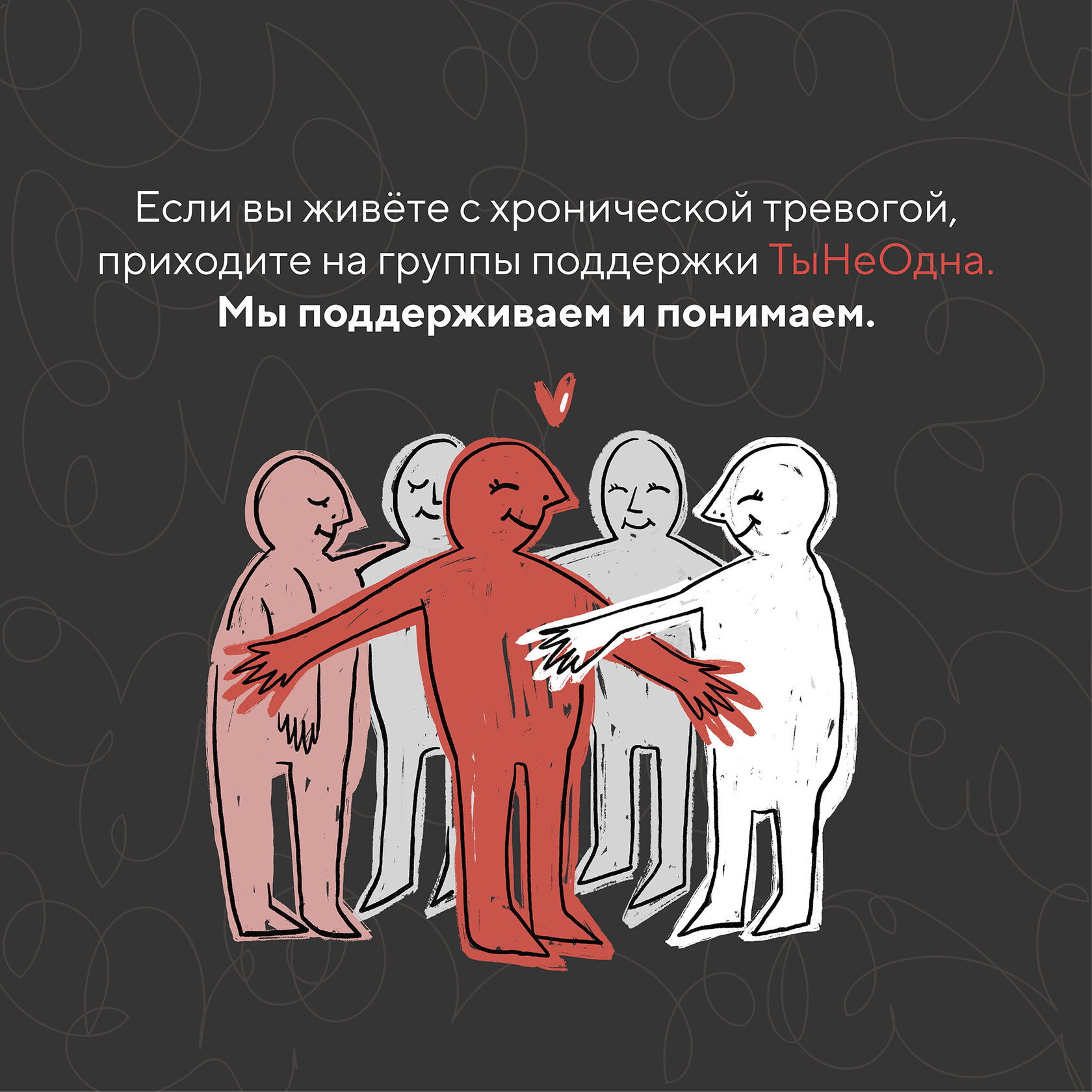 Проект для социальных сетей волонтёрской организации ТыНеОдна Визуализация постов в социальной сети с авторской иллюстрацией на тему хронической тревоги