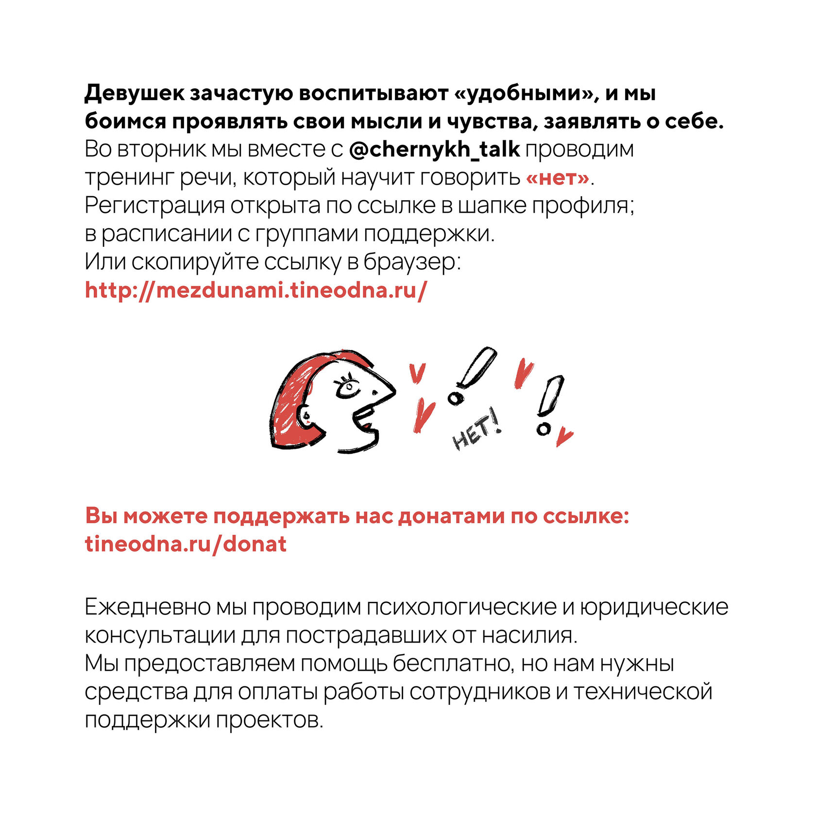 Проект для социальных сетей волонтёрской организации ТыНеОдна Визуализация постов в социальной сети с авторской иллюстрацией на тему анонса вебинара